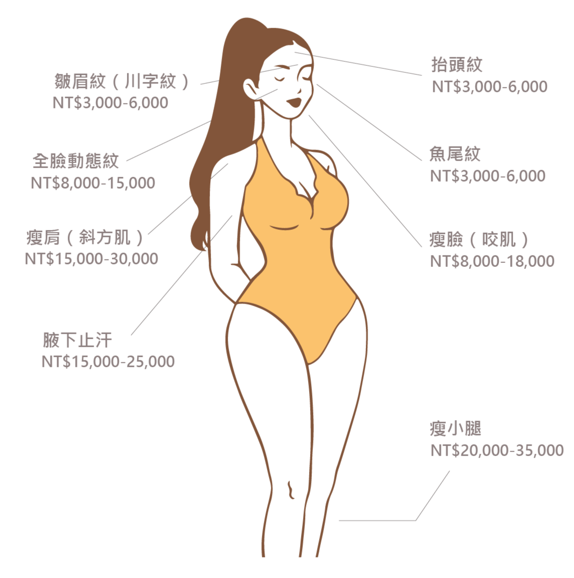 | 瘦肩(斜方肌) | 100-200U | NT$15,000-30,000 | 4-6 個月 |